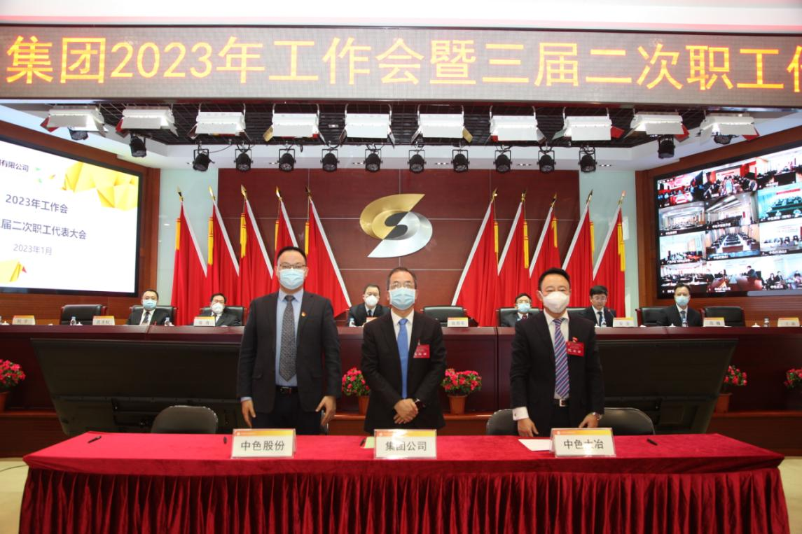 2023年1月9日至10日,中國有色集團召開2023年工作會暨三屆二次職工代表大會,全面貫徹中央經濟工作會議和中央企業負責人會議精神,總結2022年工作,分析面臨的形勢和挑戰,部署2023年工作,加快推動集團公司高質量發展。集團公司黨委書記、董事長奚正平講話,黨委副書記、總經理張晉軍作工作報告。國家審計署企業審計三局一級巡視員張進,中國有色集團外部董事夏策明、馬力、張逢春出席會議。