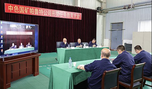 會議以視頻形式召開。中色國礦領(lǐng)導(dǎo)班子成員,全體中方員工參會。
