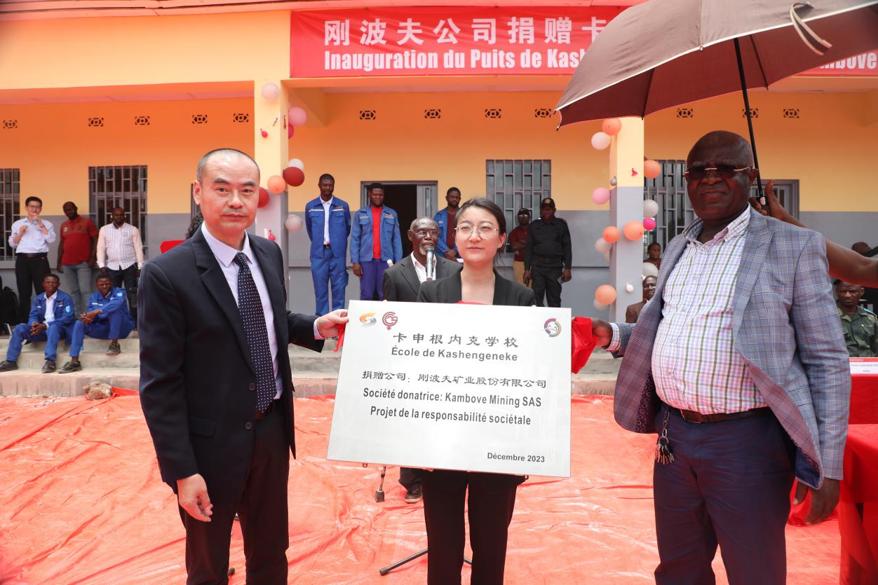 3月1日,剛果(金)上加丹加省利卡西市坎博韋鎮卡申根內克村在小學舉行典禮,慶祝由中國有色集團出資企業剛波夫礦業股份有限公司(簡稱:中色剛波夫)捐建的卡申根內克小學及水井項目竣工。中國有色集團剛果(金)代表處主任劉軼,中色剛波夫董事長王首高、總經理李沖、副總經理錢兆明出席交接活動。在上加丹加省省長代表、財政部部長、礦業部長辦公室主任、杰卡明副董事長、坎博韋鎮鎮長、坎博韋社區發展委員會等眾多來賓和學校師生的見證下,中色剛波夫正式向卡申根內克村交接小學及水井,并向小學捐贈了積木、足球、鉛筆、橡皮和學生筆記本等。