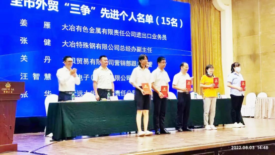 8月3日,在全市外貿工作及業務培訓會上,公司被黃石市政府授予“加工貿易專項獎”,并獲得獎勵資金100萬元,公司商務部業務員姜雁被評為“全市外貿‘三爭’先進個人”。
