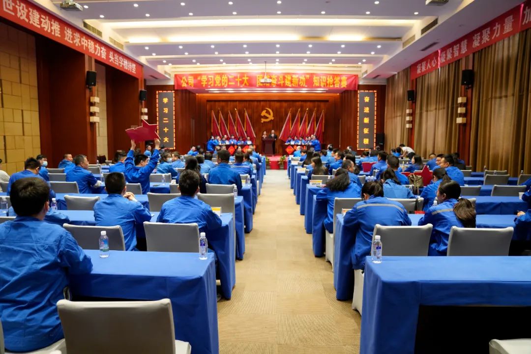 ????以賽比學,實現(xiàn)廣泛參與。開展“學習黨的二十大? 團結(jié)奮斗建新功”知識搶答賽,來自公司總部、各單位的12支參賽隊伍,在比學趕幫超中感悟思想偉力、凝聚奮進力量。