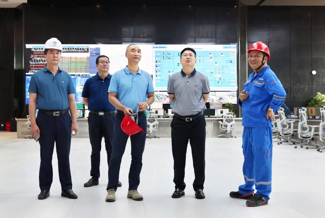 ????王晶軍一行先后來到智慧中心、研發(fā)中心以及電解主廠房等區(qū)域,了解生產(chǎn)工藝流程、原料來源、環(huán)保指標(biāo)以及智能化工廠建設(shè)情況。